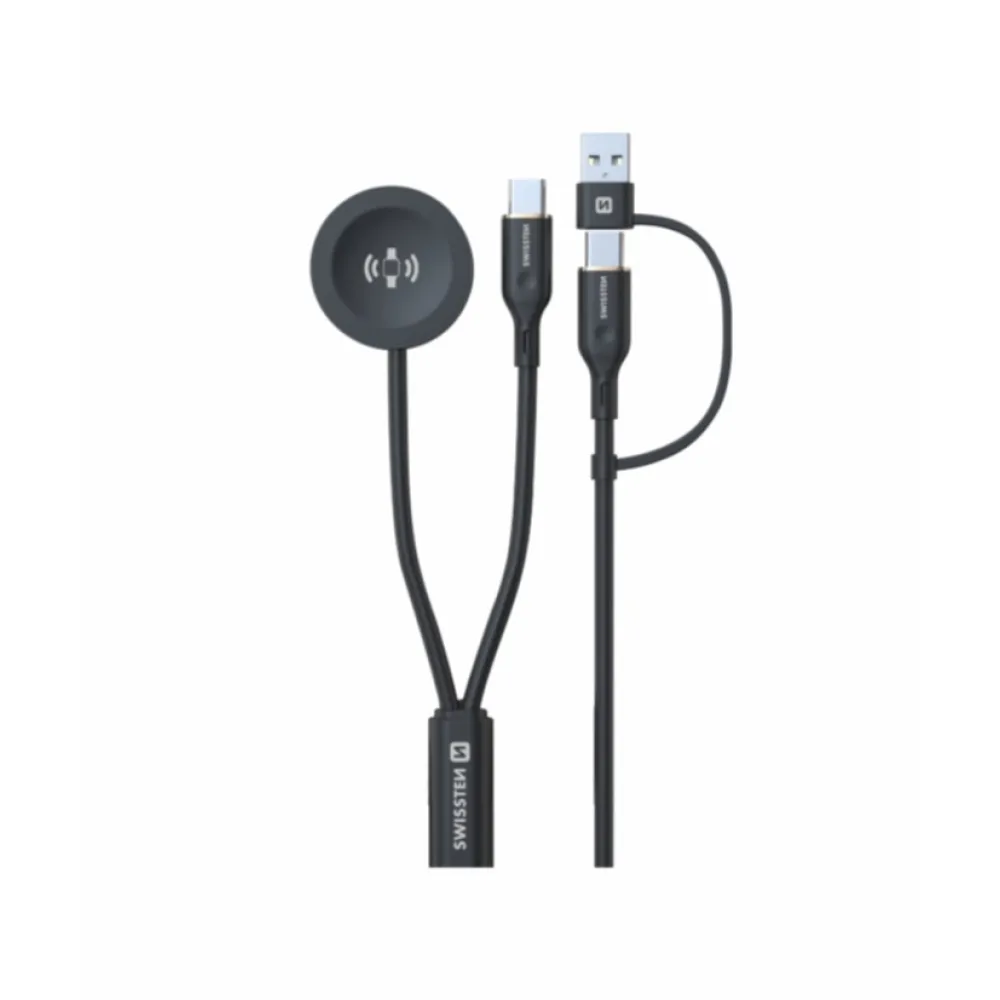 Swissten mágneses kábel 2in1 Samsung Galaxy Watch-hoz és USB-C, USB-C (USB-A), 1,5m - Fekete