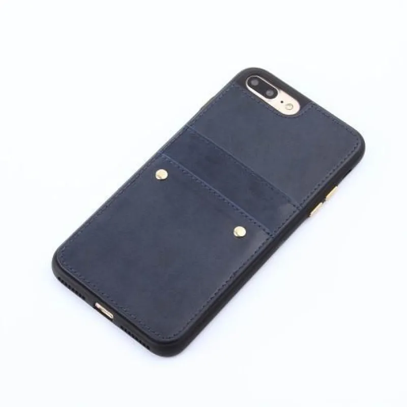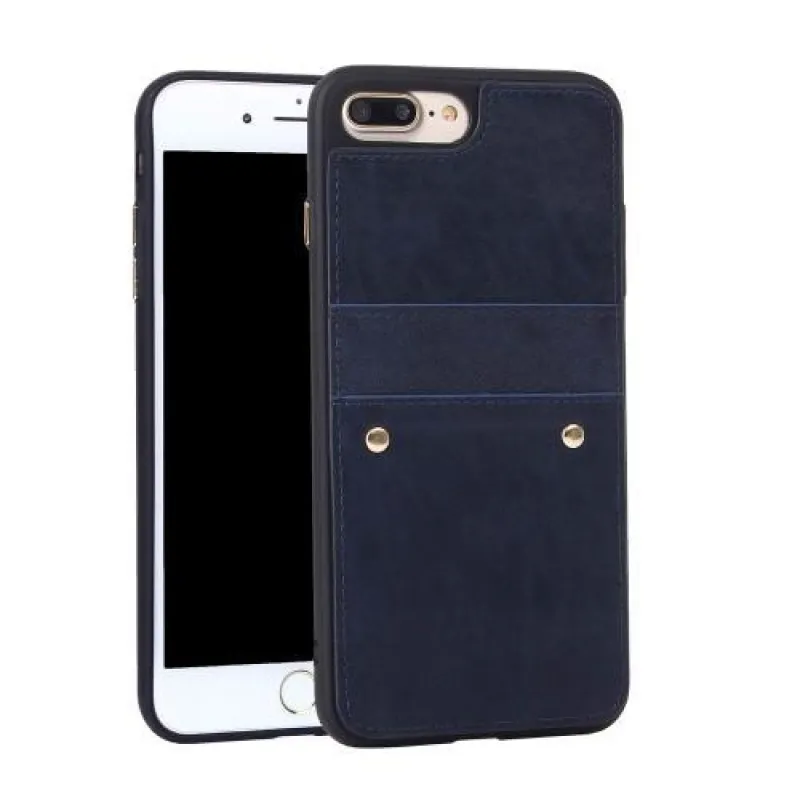 Szegecses zselés tok PU bőr hátlappal és rekesszel iPhone 8 Plus és 7 Plus készülékhez - kék