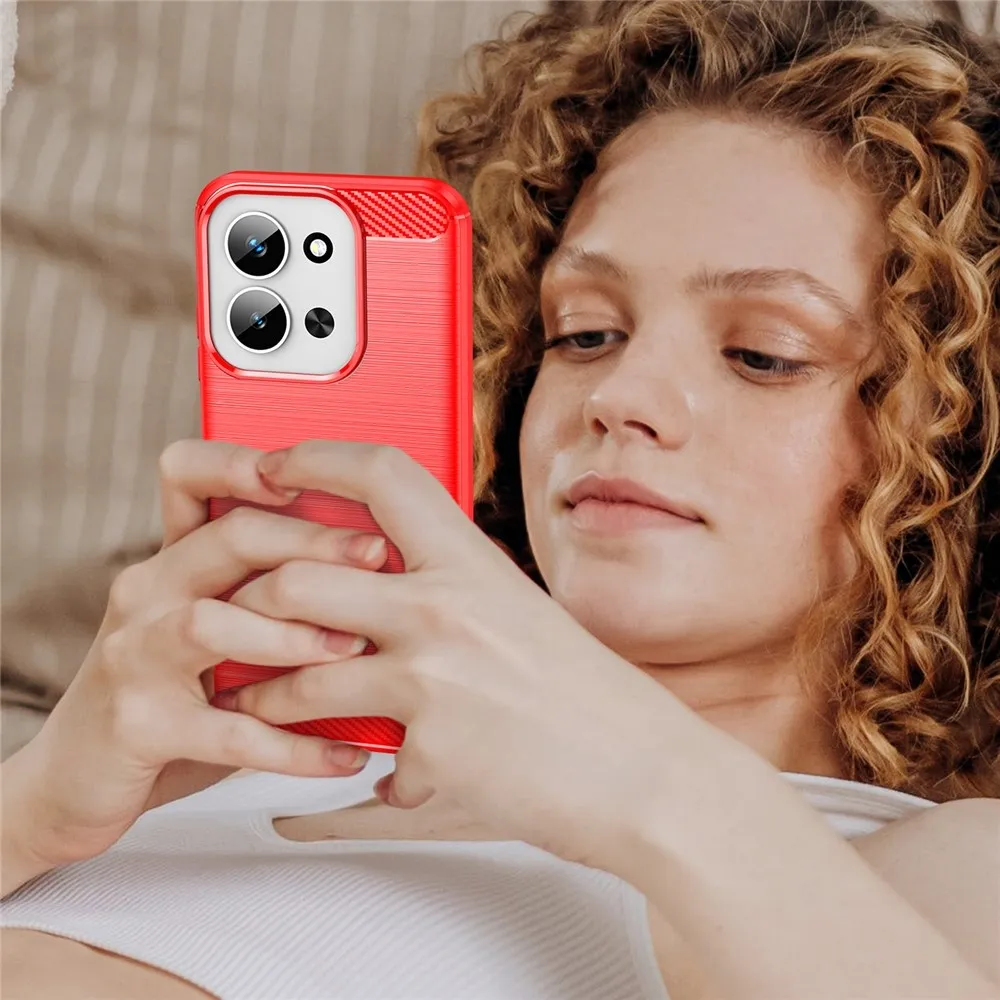 Piros zselés ellenálló borítás Carbon a Xiaomi Redmi 15C 4G (171mm)/Poco C85 4G (171mm) számára