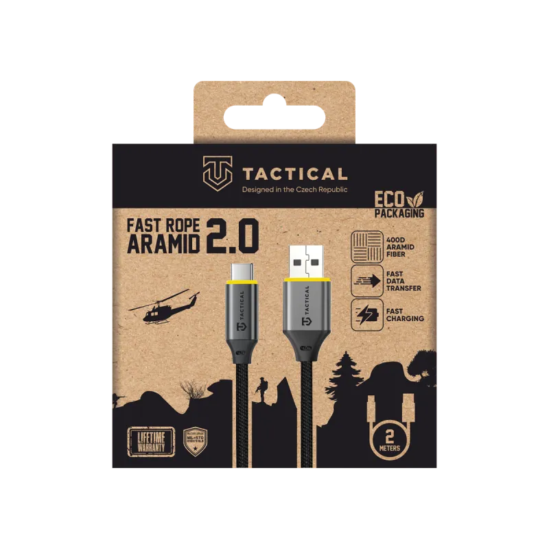 Taktikai gyorskötél Aramid 2.0 kábel USB-A/USB-C 2m