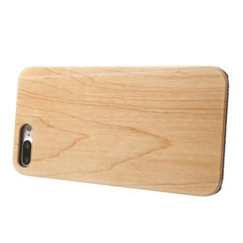Természetes műanyag tok fa hátlappal iPhone 7 Plus és iPhone 8 Plus készülékhez - világosbarna színben