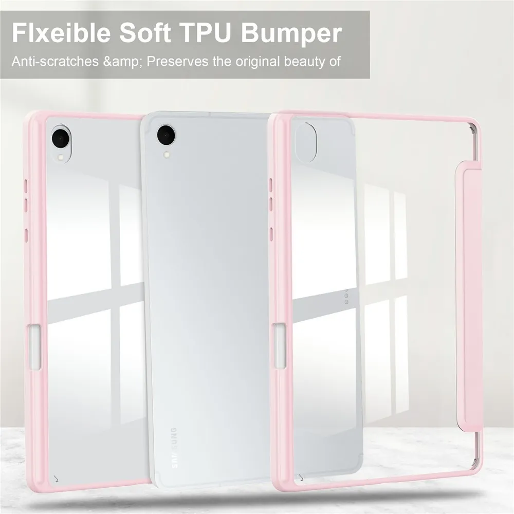 ✅Teljes védelem: A Samsung Galaxy Tab S11 rózsaszín Case Smart tokja tartós műbőr flip tokot, TPU keretet és átlátszó hátlapot kombinál, amely átfogó védelmet nyújt a karcolások, esések és ütések ellen.