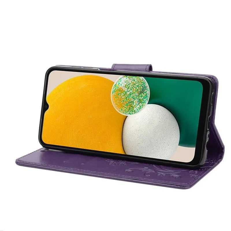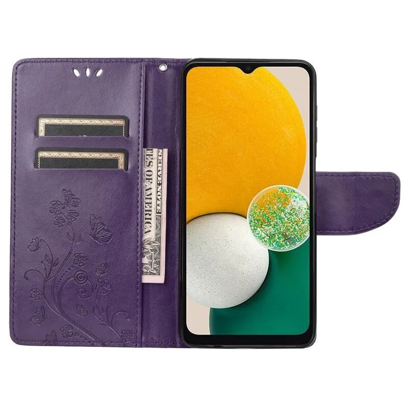 Virág sötétlila pénztárca tok Samsung Galaxy A13 4G-hez