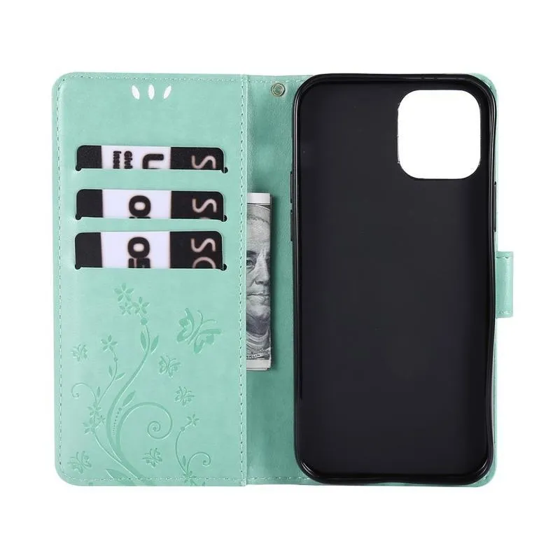 Virágos, teáskék pénztárca tok iPhone 12 Pro/12 készülékhez
