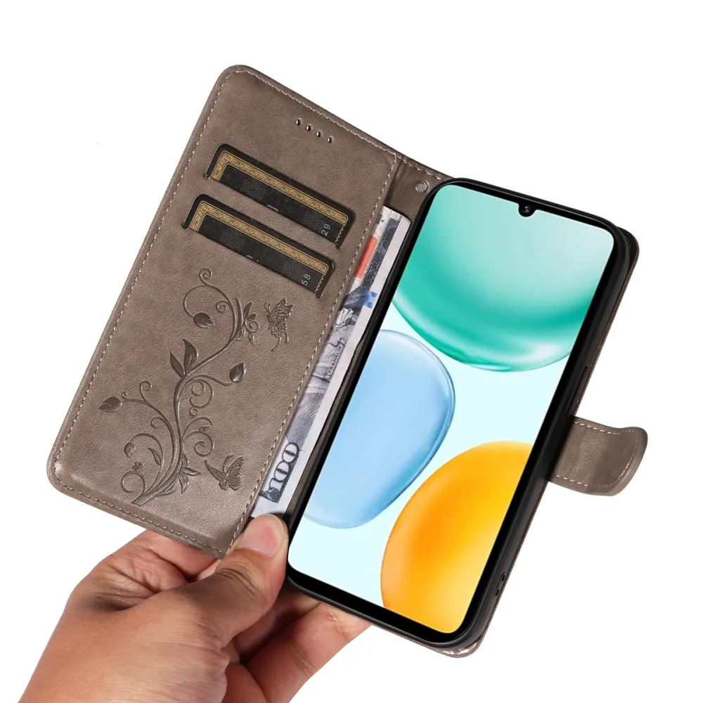 Virágos könyvtok Honor X5c Plus-hoz - szürke