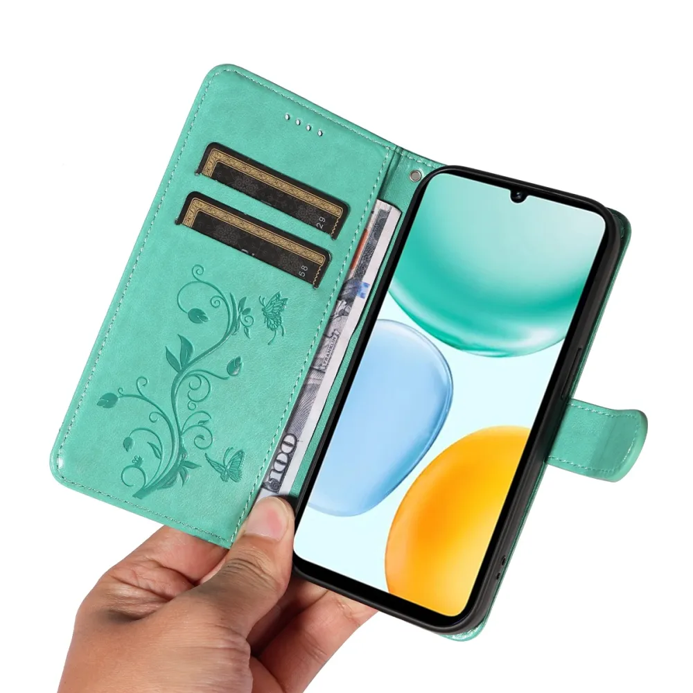 Virágos tok Honor X5c Plus készülékhez - kékeszöld