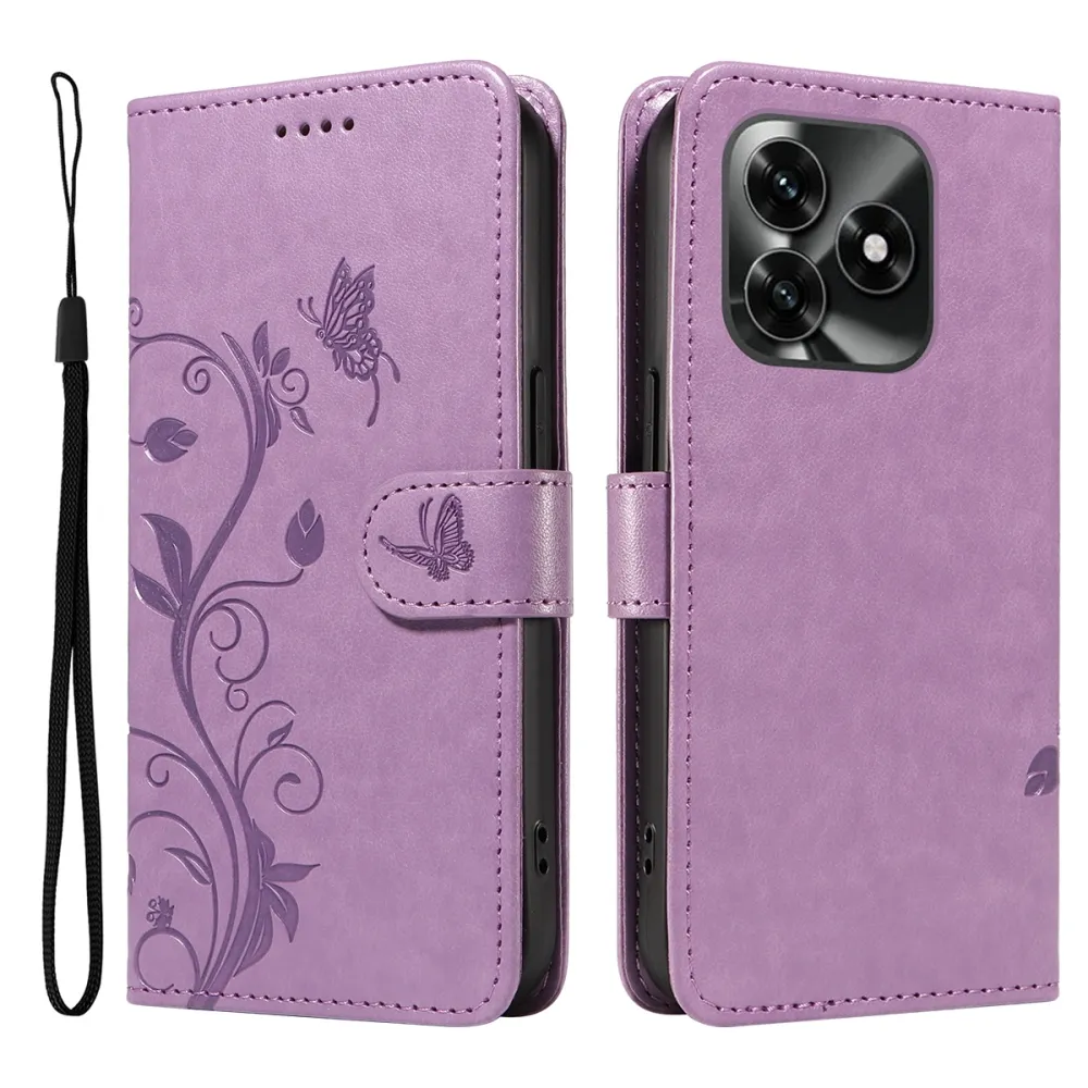• Elegáns műbőr világoslila színben, finom virág- és pillangómintával.
