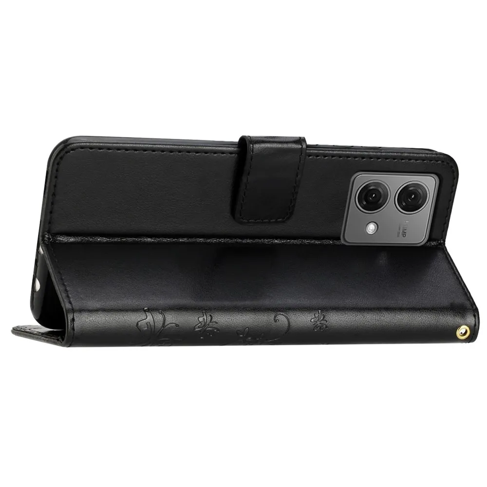 Fekete pénztárca tok Virágok a Motorola Moto G85 5G-hez