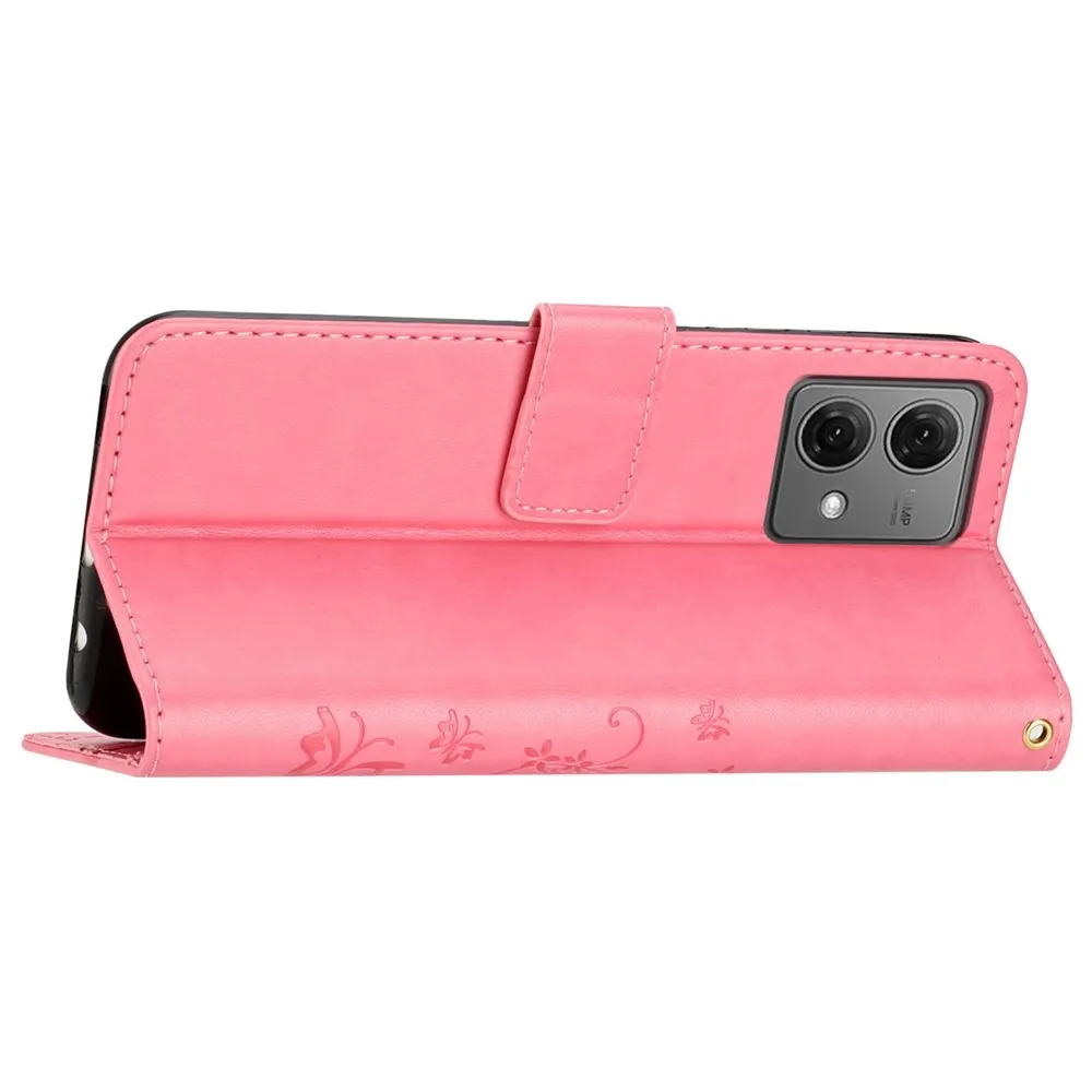 Rózsaszín pénztárca tok Virágok a Motorola Moto G85 5G-hez
