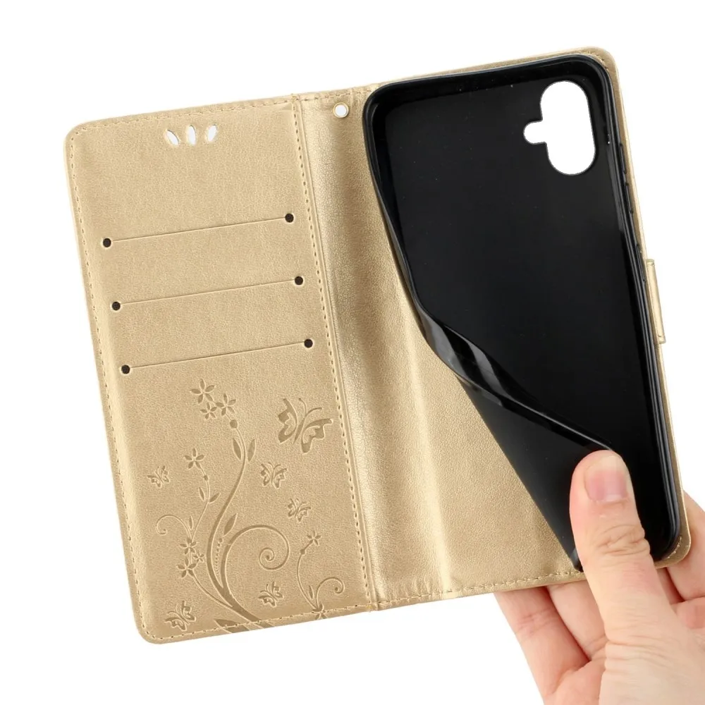 Arany pénztárca tok Virágok Samsung Galaxy A06 4G-hez