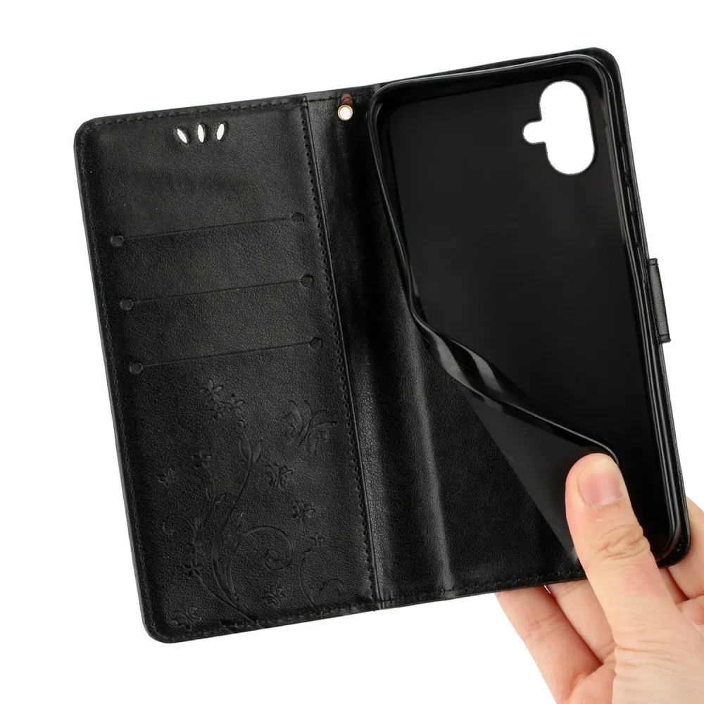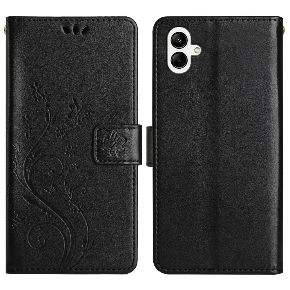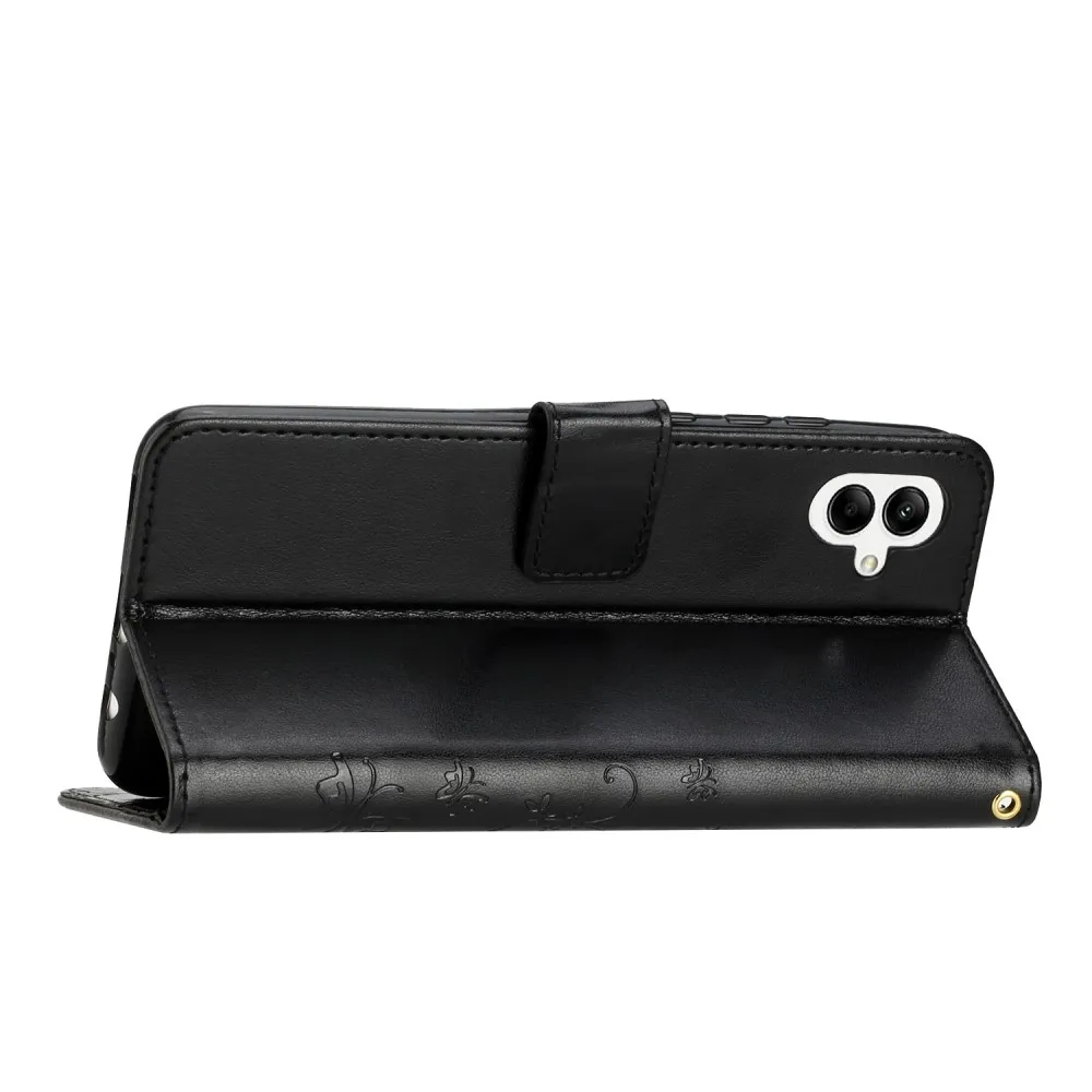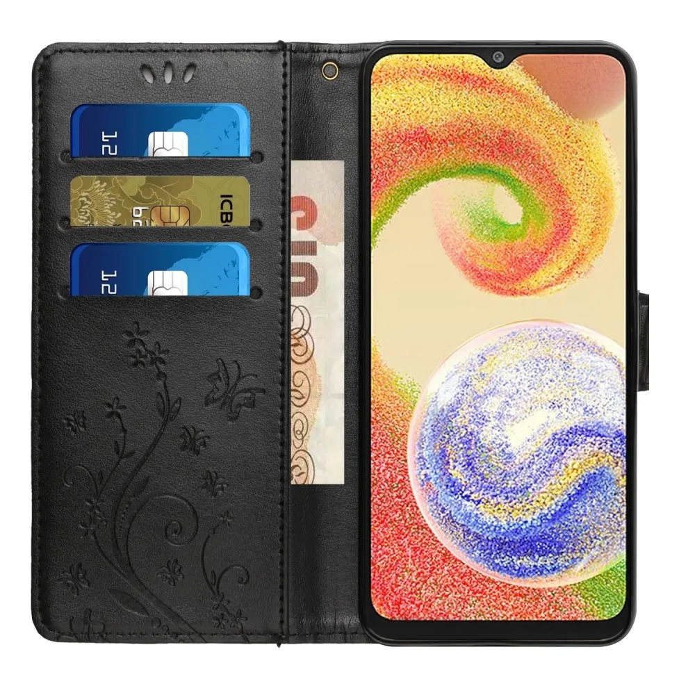 Fekete pénztárca tok Virágok Samsung Galaxy A06 4G-hez