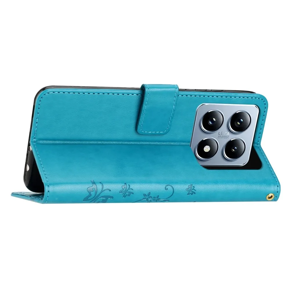 Kék pénztárca tok Virágok a Xiaomi 14T számára