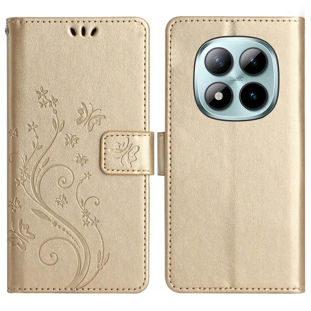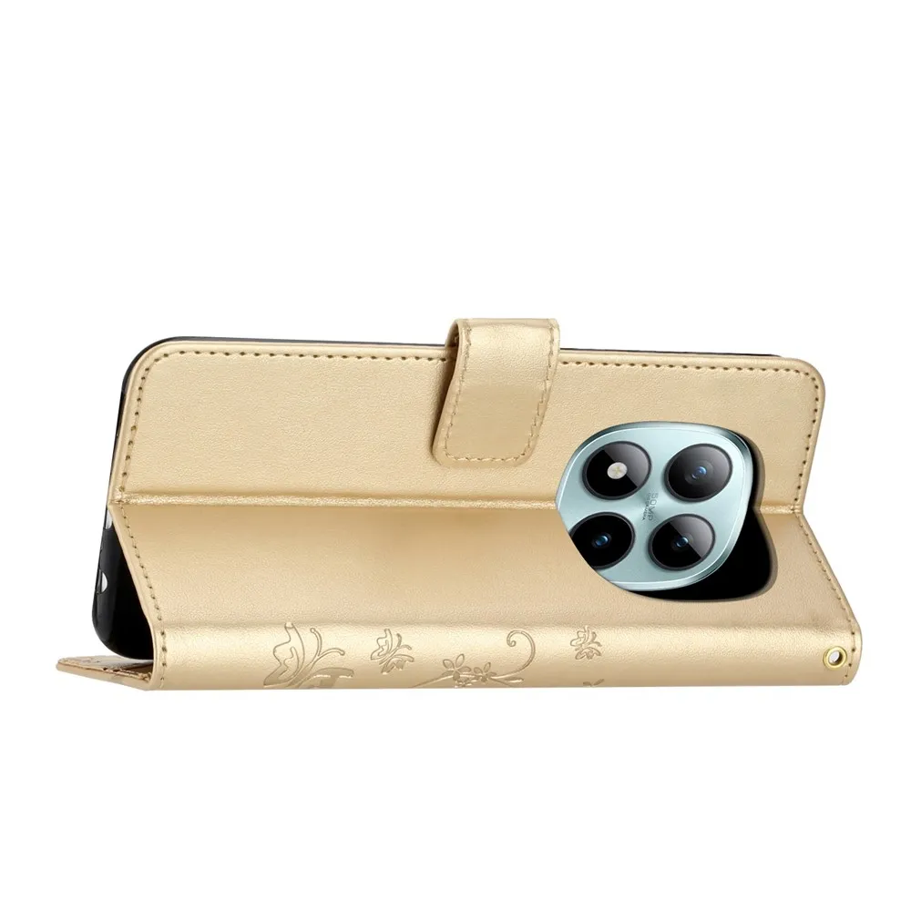 Arany pénztárca tok Virágok a Xiaomi Redmi Note 15 Pro+ 5G számára