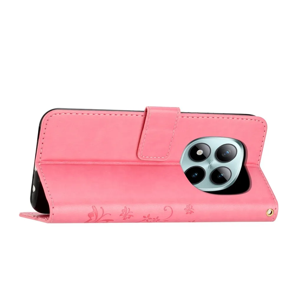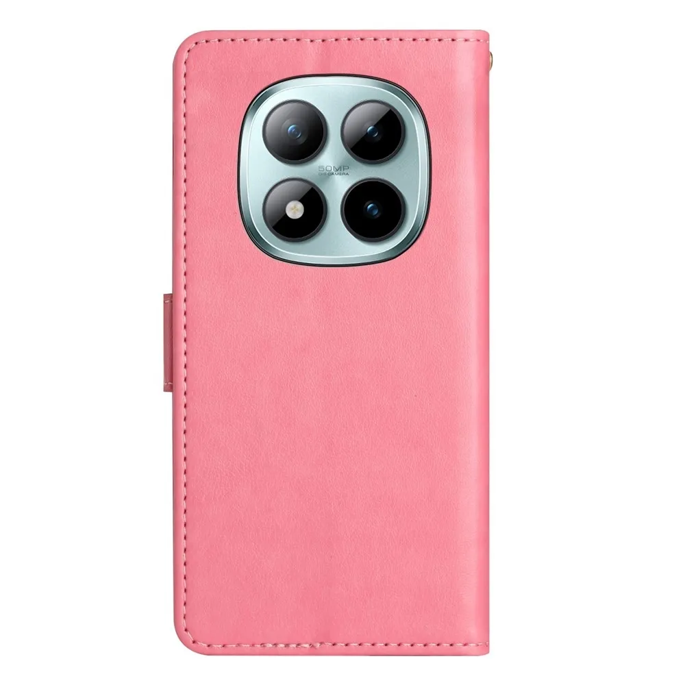 Rózsaszín pénztárca tok Virágok a Xiaomi Redmi Note 15 Pro+ 5G számára