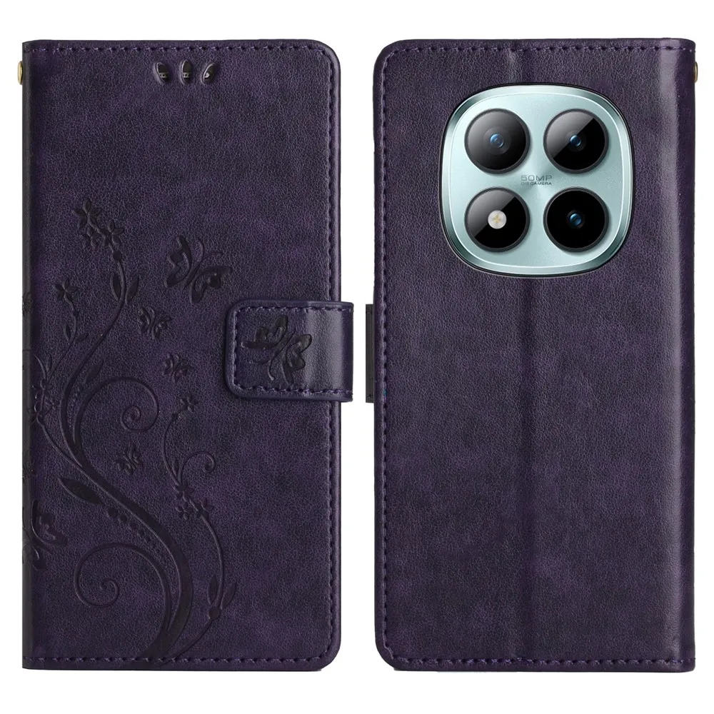 Sötét lila Virágok pénztárca tok Xiaomi Redmi Note 15 Pro+ 5G számára