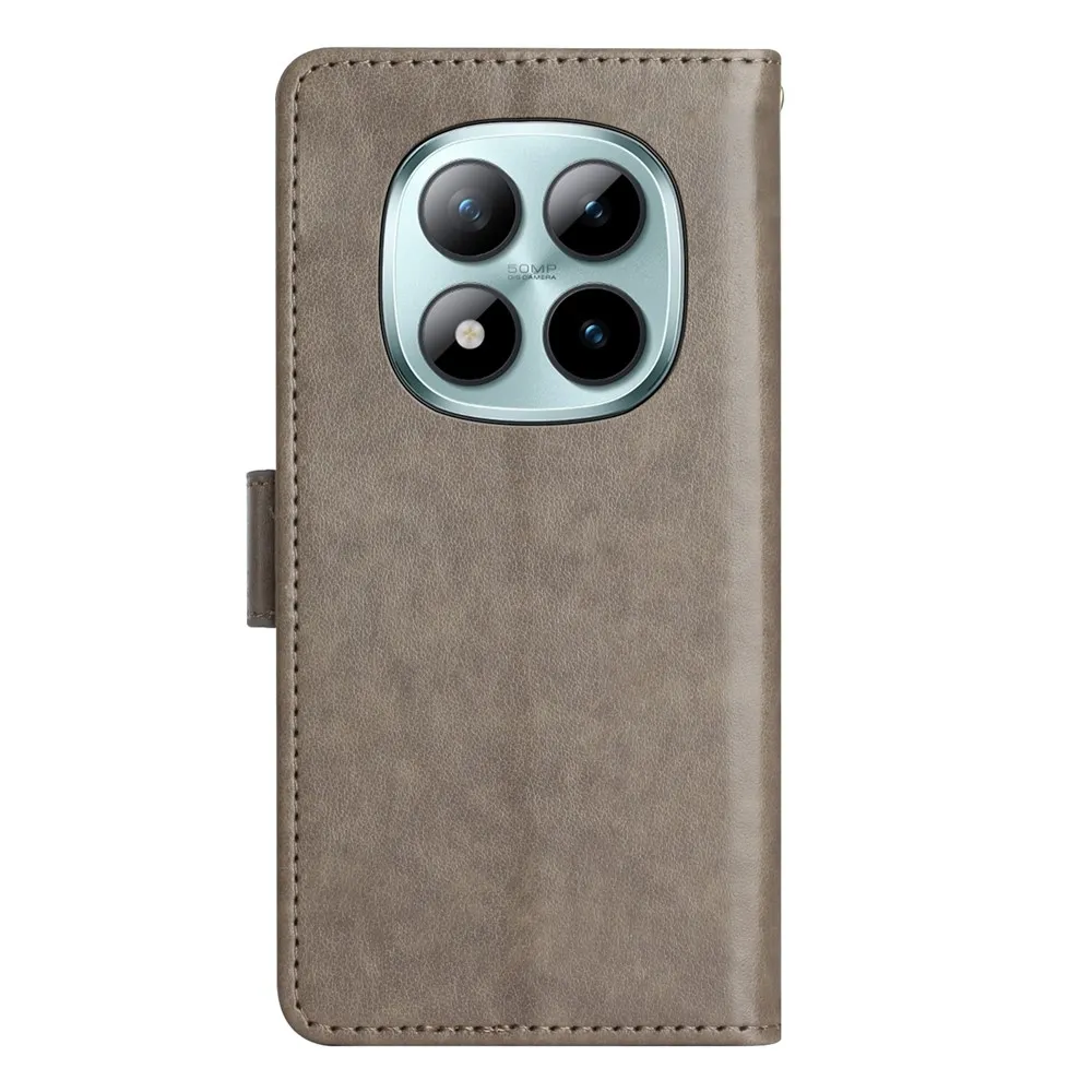 Szürke pénztárca tok Virágok Xiaomi Redmi Note 15 Pro+ 5G számára