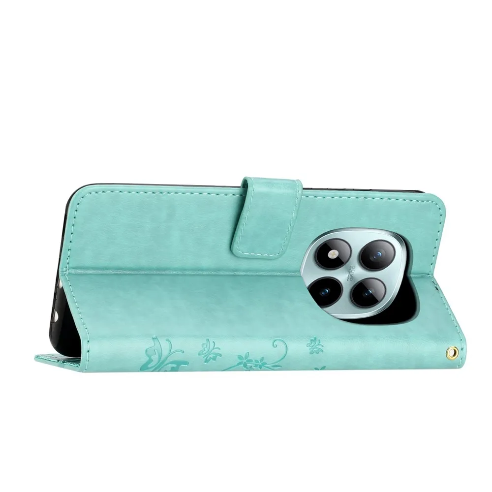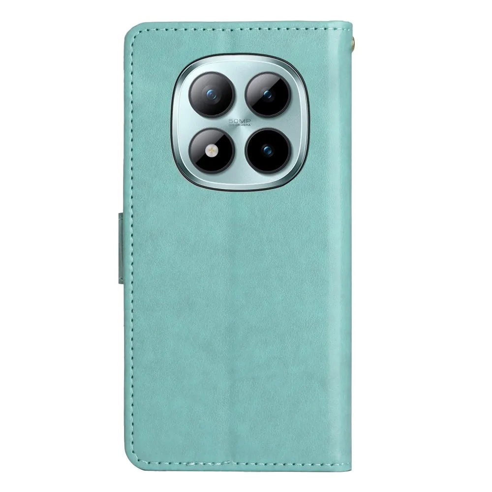 Kék-zöld pénztárca tok Virágok a Xiaomi Redmi Note 15 Pro+ 5G-hez