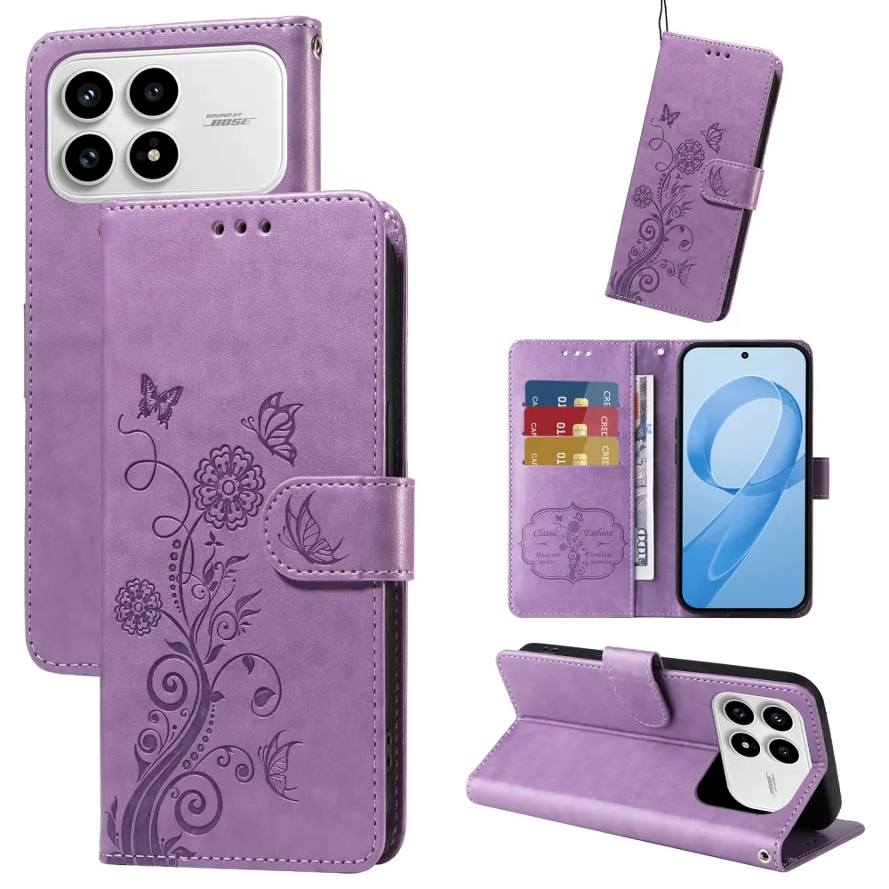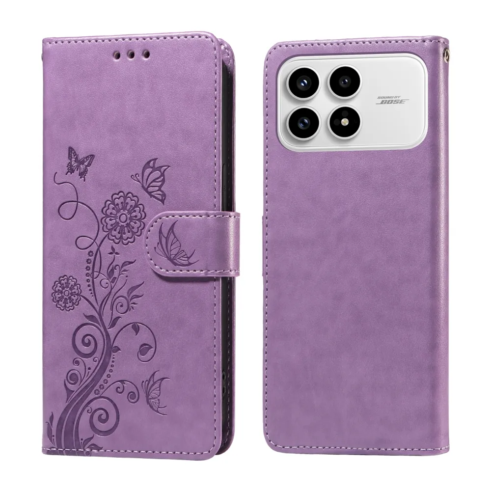 Lila pénztárca tok Virágos Xiaomi Poco F8 Pro 5G számára