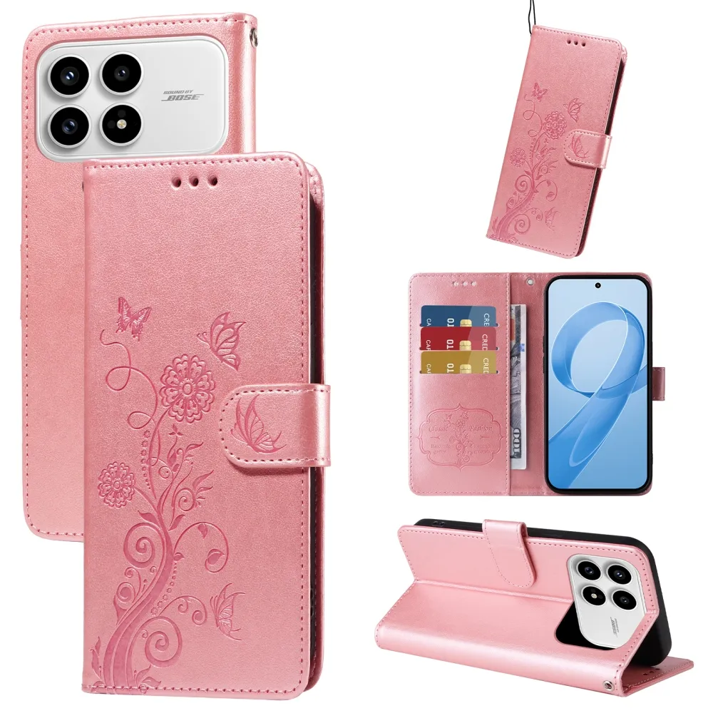 Rózsaszín pénztárca tok Virágos a Xiaomi Poco F8 Pro 5G számára