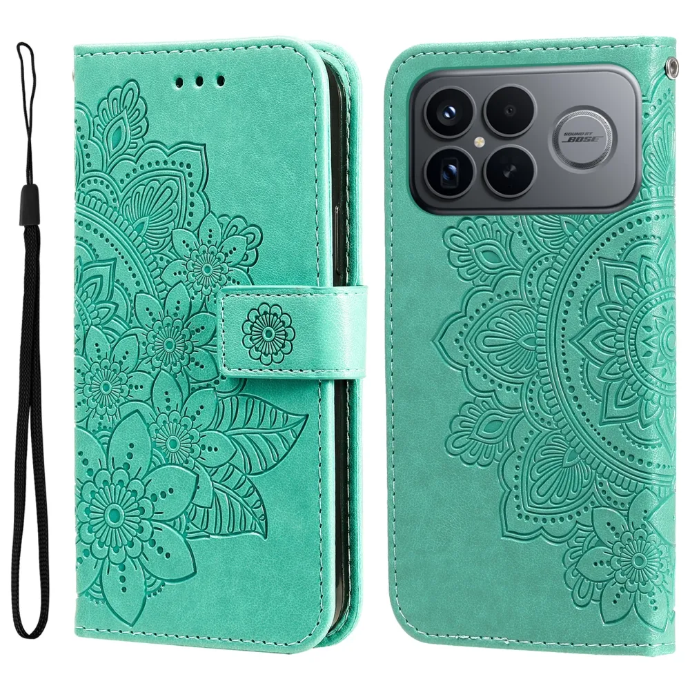 Kék-zöld pénztárca tok Floral a Xiaomi Poco F8 Ultra 5G számára