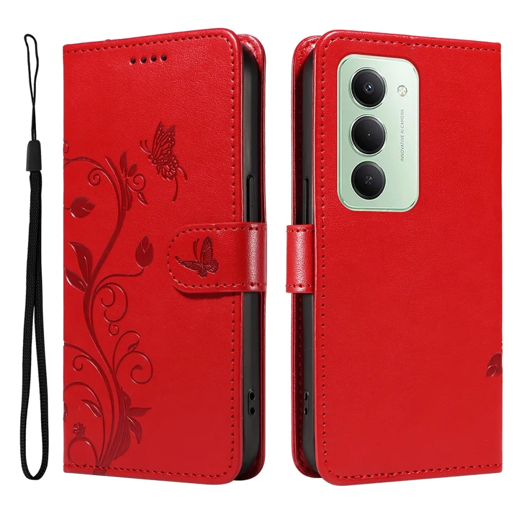 Piros pénztárca tok Virágok a Xiaomi Redmi 15 5G (169mm) számára