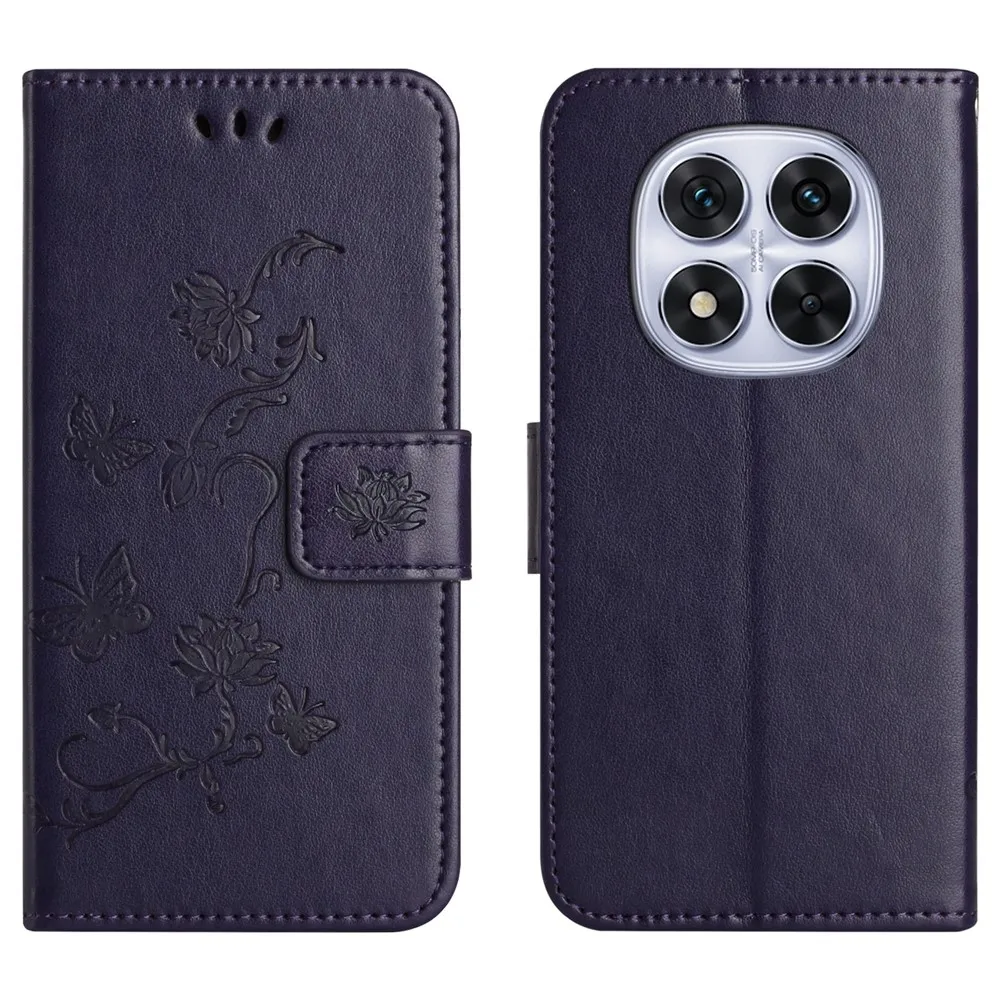 Sötét lila pénztárca tok Virág Xiaomi Redmi Note 15 Pro+ 5G számára