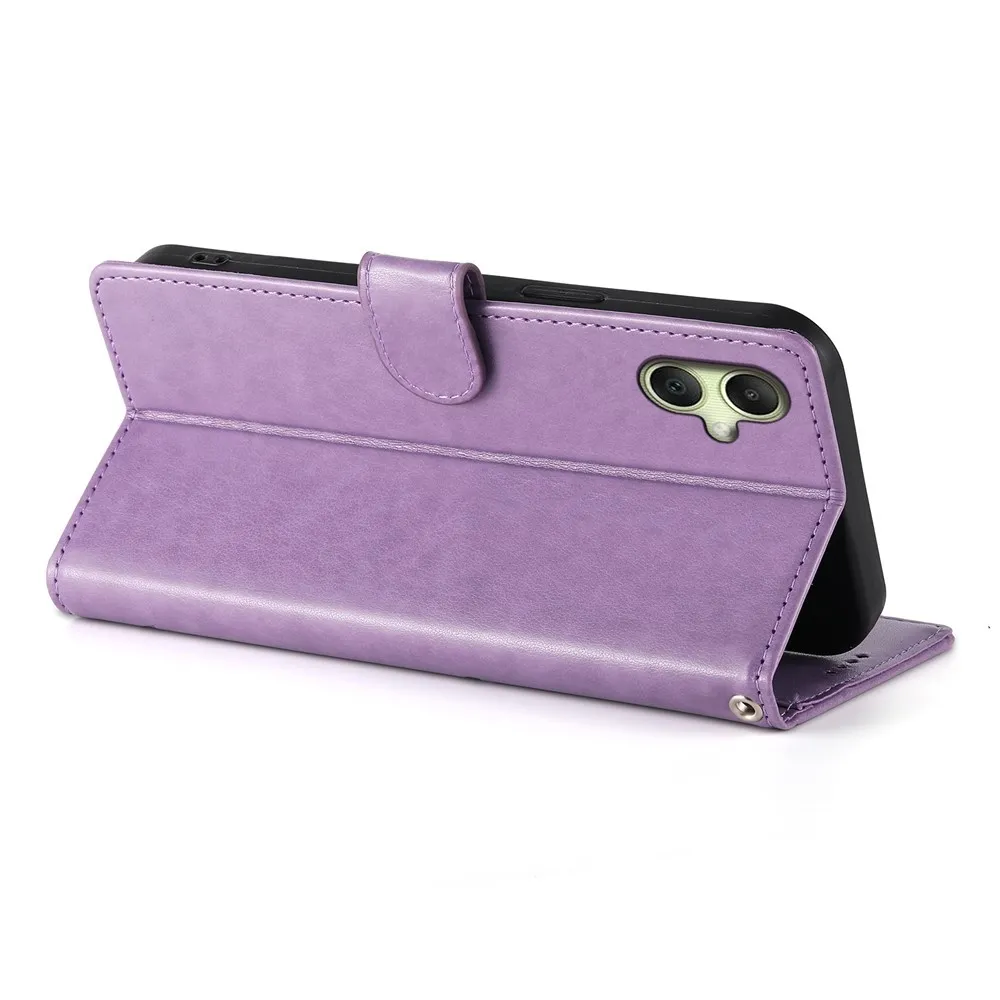 Lila pénztárca tok Virágos Samsung Galaxy A07 4G számára