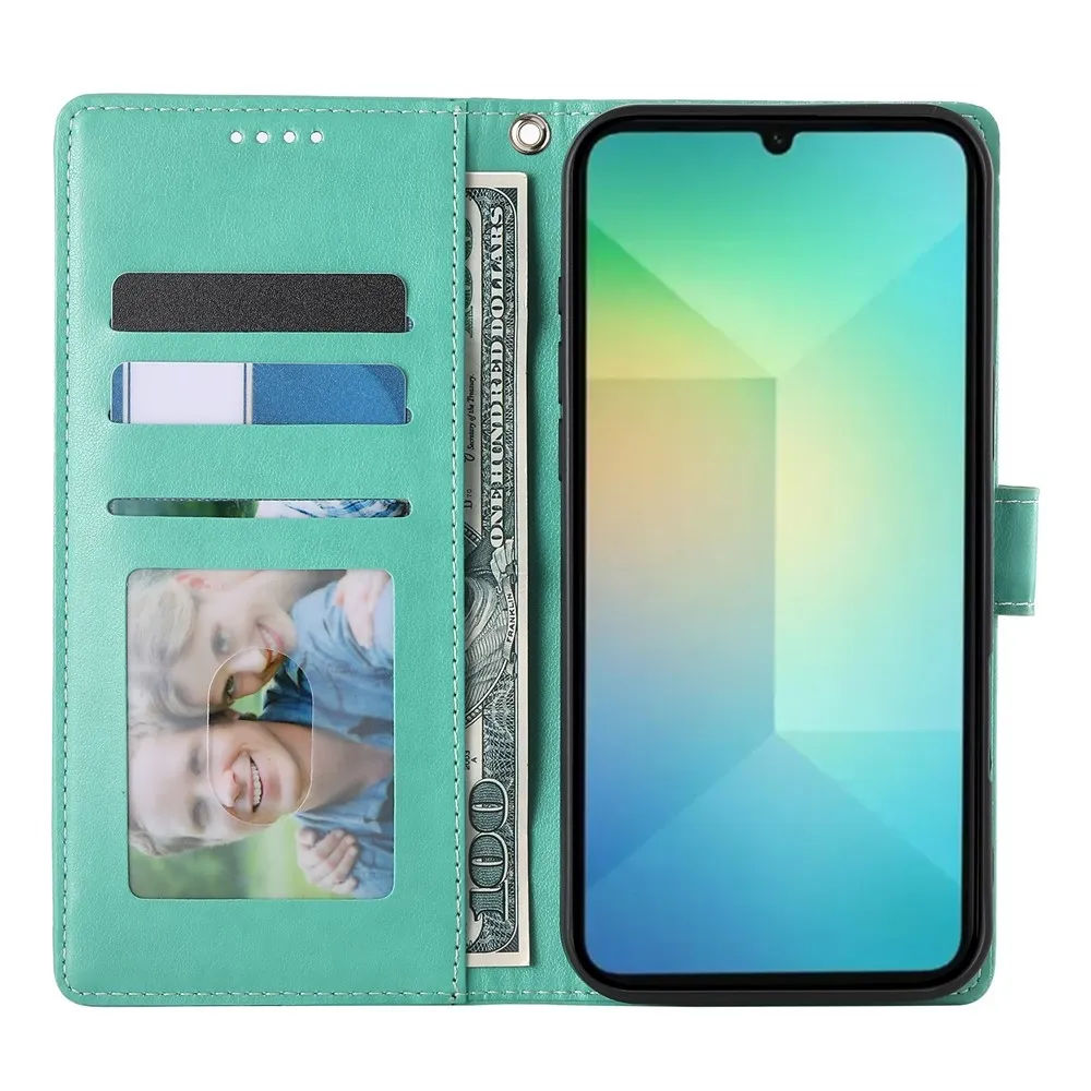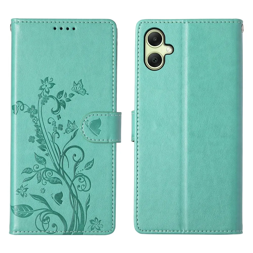 Kék-zöld pénztárca tok Virágos a Samsung Galaxy A07 4G-hez