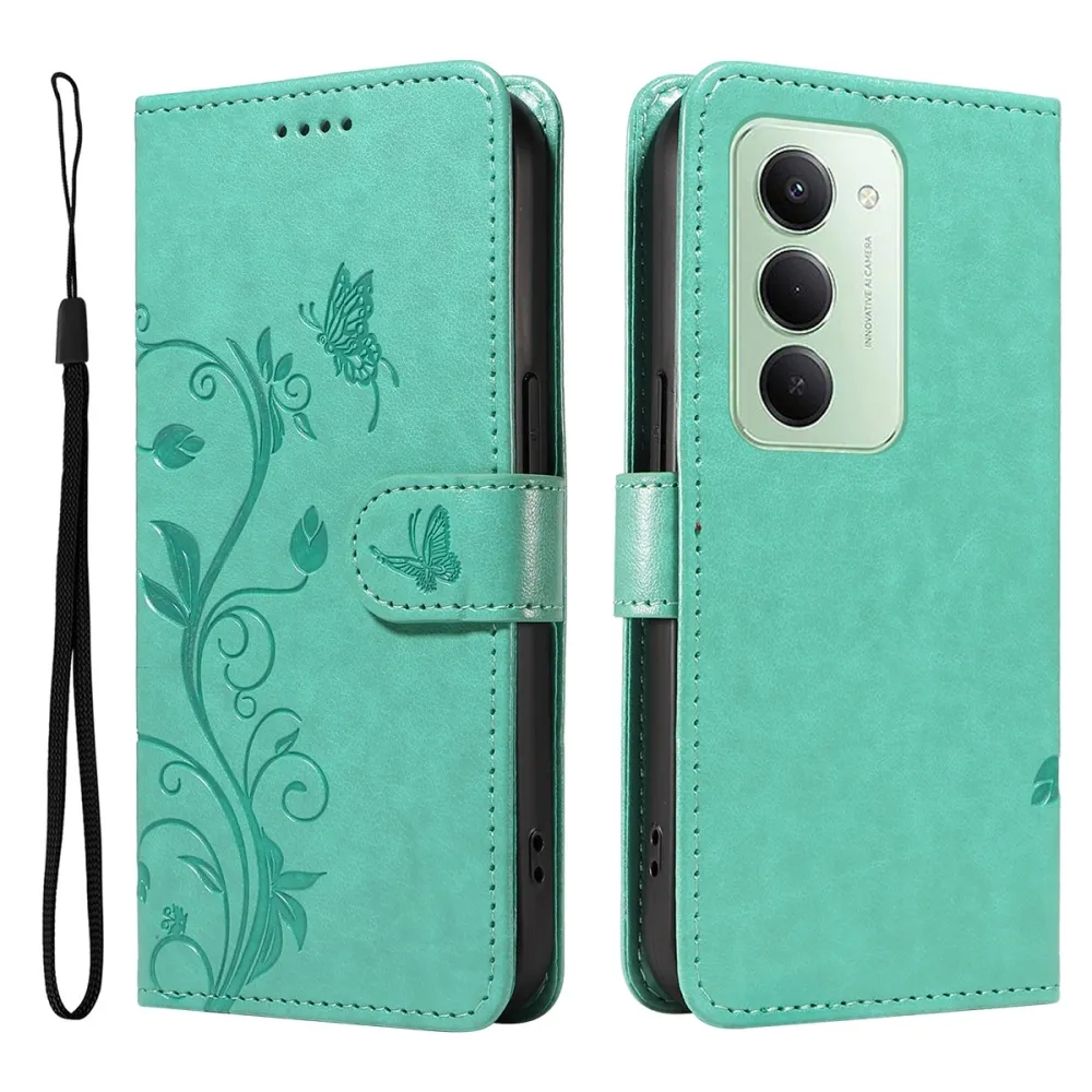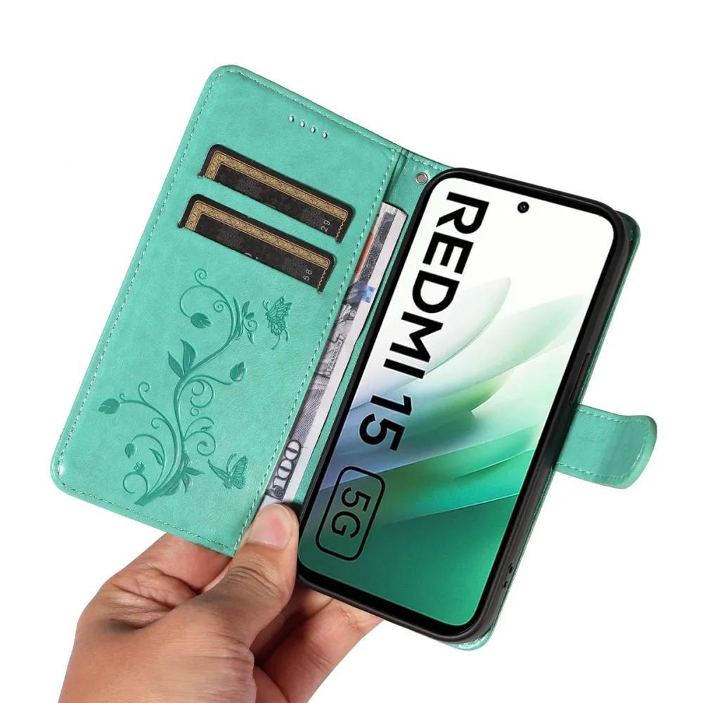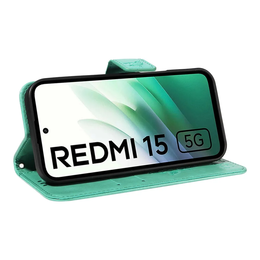 Kék-zöld pénztárca tok Virágos a Xiaomi Redmi 15 4G (171mm) számára