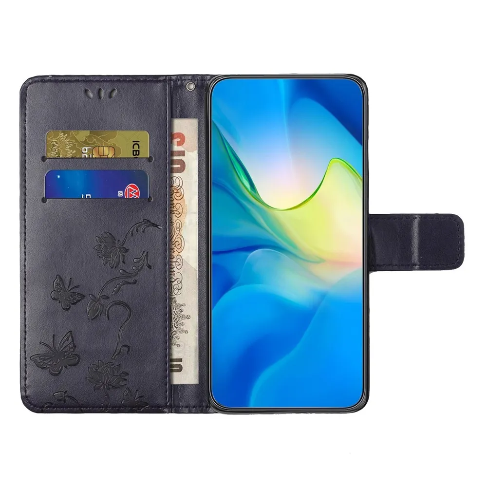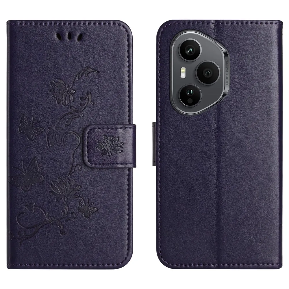Sötétkék pénztárca tok Flower a Honor 400 Pro-hoz
