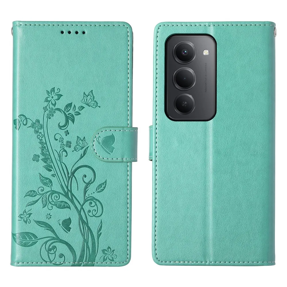 Kék-zöld pénztárca tok Virágos a Xiaomi Redmi 15 5G (169mm) számára