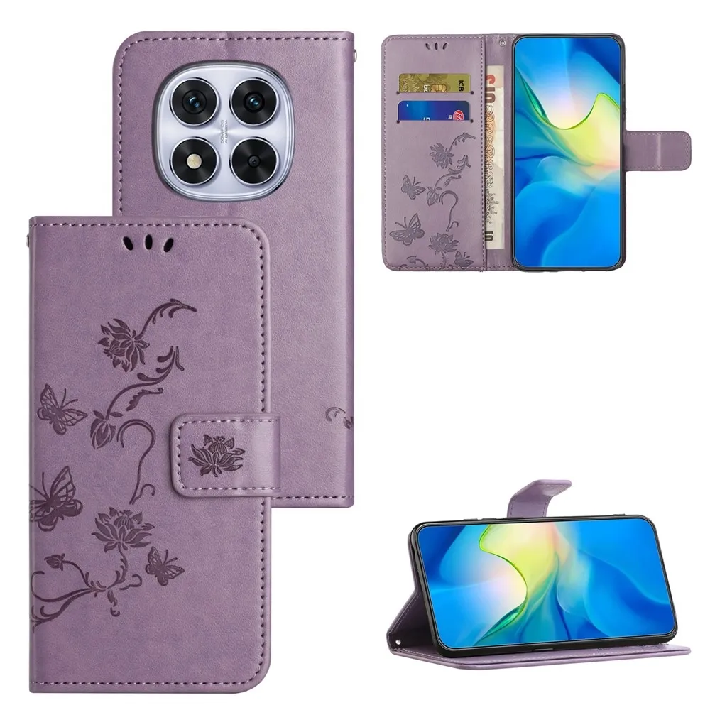 Világos lila pénztárca tok Virág Xiaomi Redmi Note 15 Pro+ 5G számára