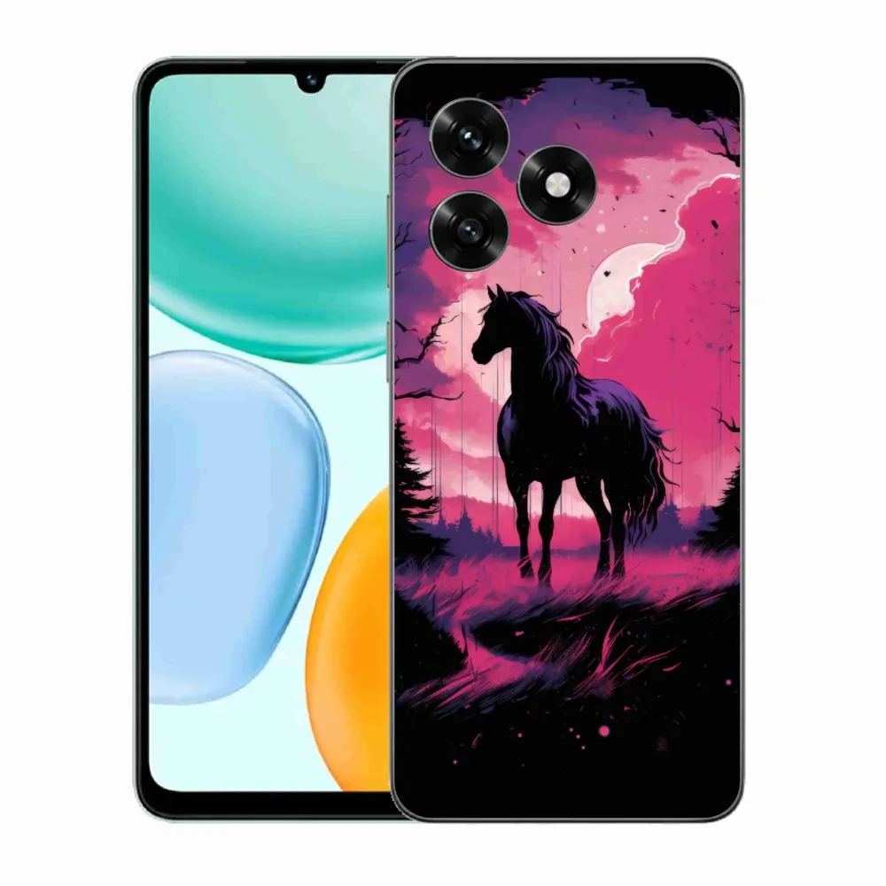Rugalmas zselés tok mmCase képpel a Honor X5c Plus számára - fekete rajzfilm ló 1
