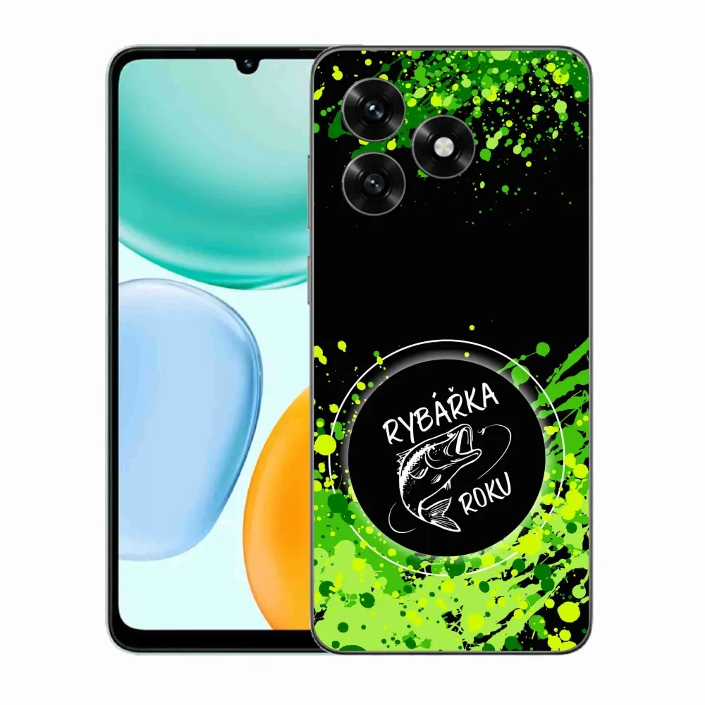 Rugalmas zselés tok mmCase a Honor X5c Plus képével - az év halásznője fekete háttérrel
