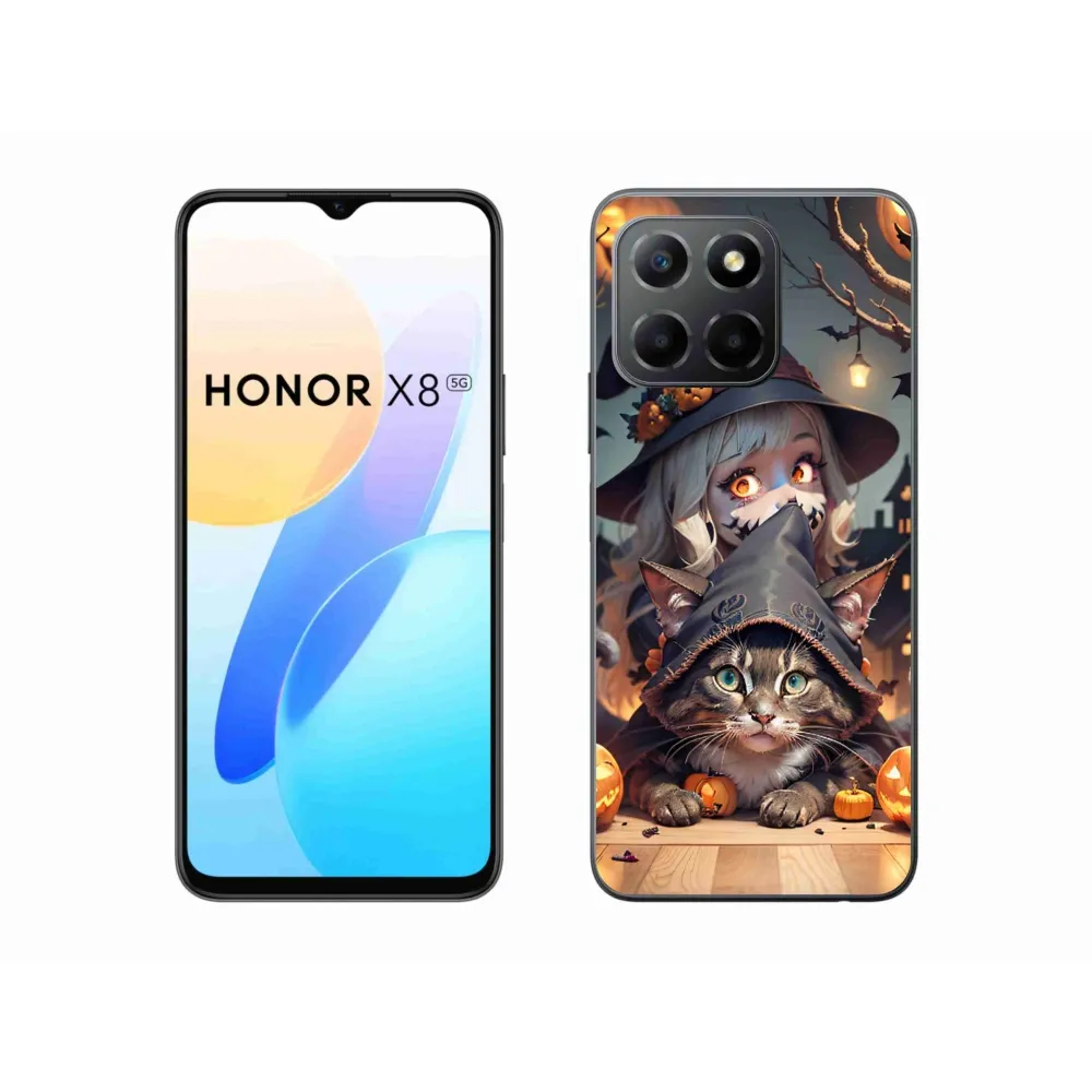 Rugalmas zselés tok mmCase képpel a Honor X8 5G-n - boszorkány macskával