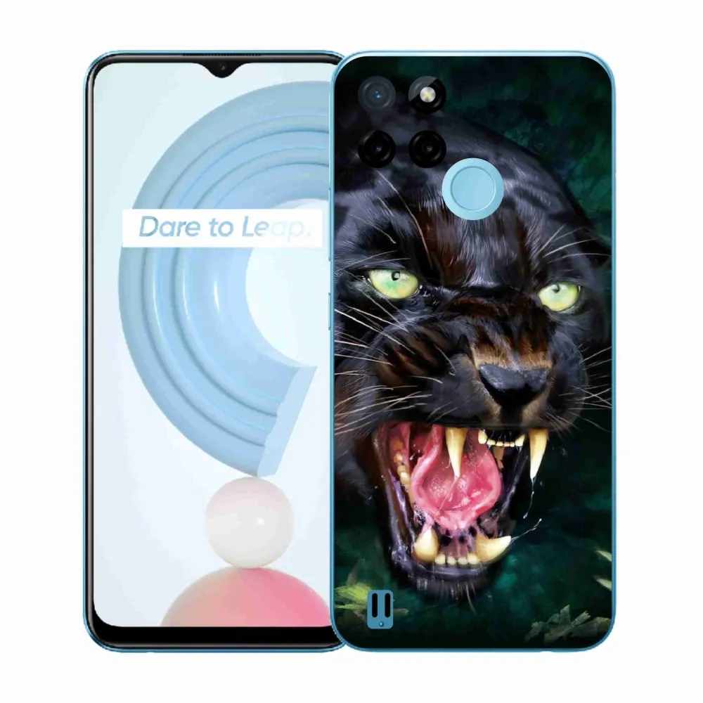 Rugalmas zselés tok mmCase képpel a Realme C21Y/C25Y számára - dühös fekete párduc