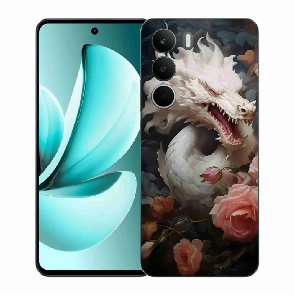 Rugalmas zselés tok mmCase képpel a Realme C71 készülékhez - fehér sárkány