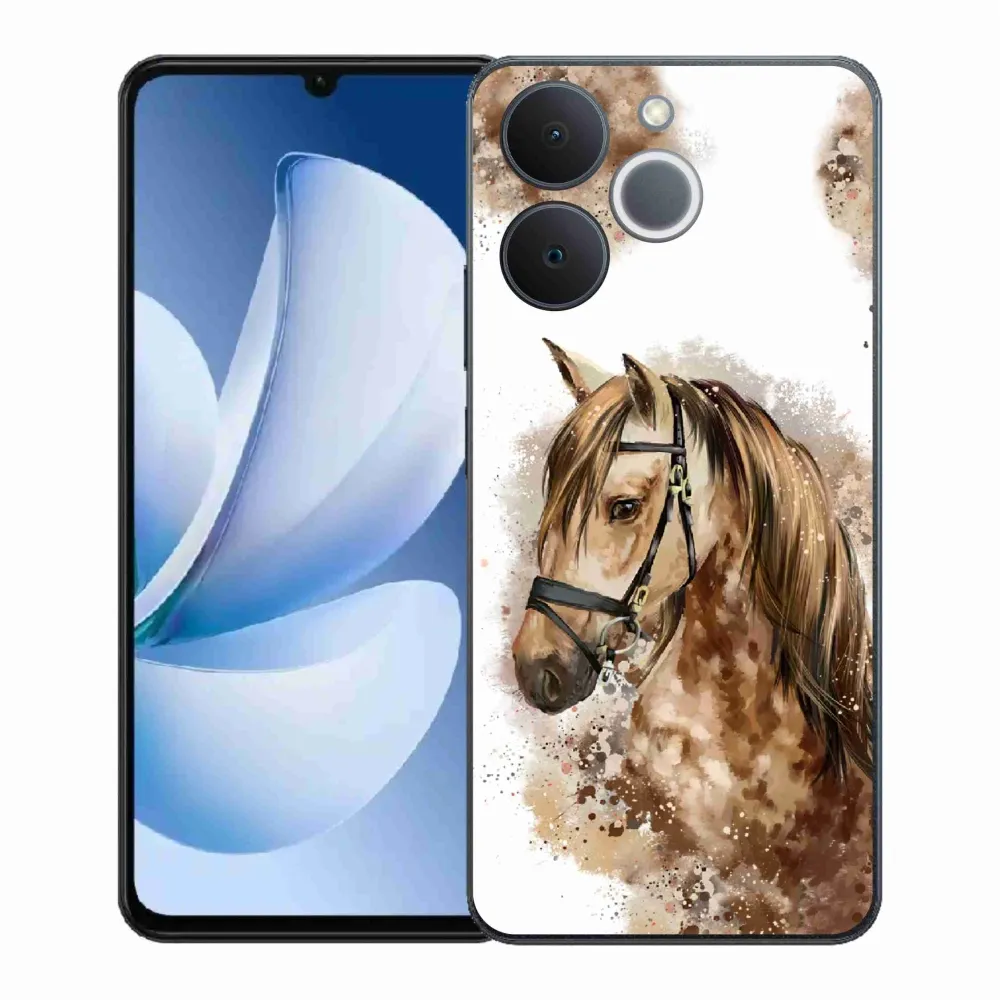 Rugalmas zselés tok mmCase képpel a Realme Note 70T számára - barna rajzfilm ló