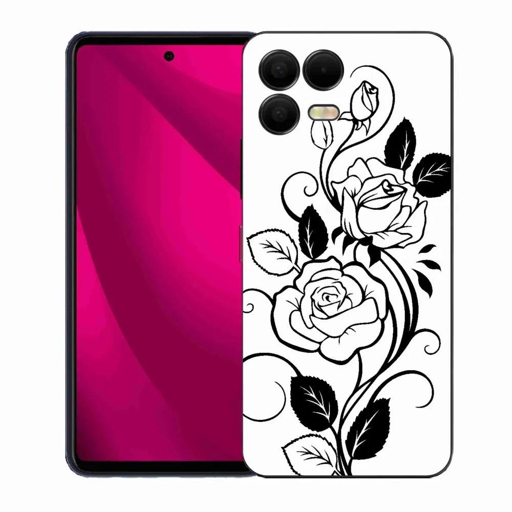Rugalmas zselés tok mmCase képpel a T-Mobile T Phone 3 Pro telefonhoz - fekete és fehér rózsa