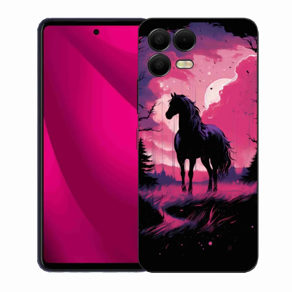 Rugalmas zselés tok mmCase képpel a T-Mobile T Phone 3 Pro telefonhoz - fekete rajzfilmes ló 1