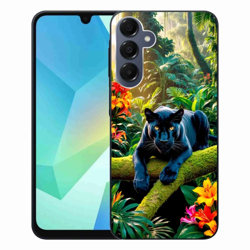 Rugalmas zselés tok mmCase a Samsung Galaxy A16 4G/5G képével - fekete párduc a dzsungelben