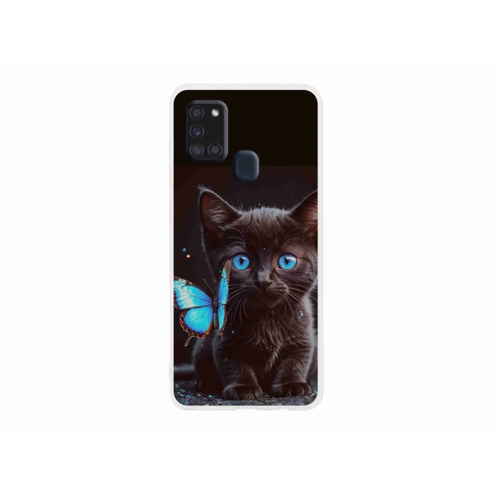 Rugalmas gél tok mm tok képpel Samsung Galaxy A21s készülékhez - fekete cica 3