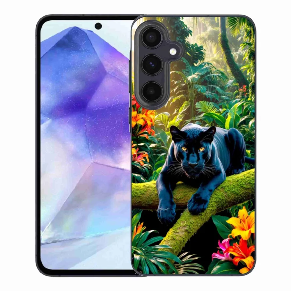 Zselés borítás mmCase Samsung Galaxy A55 5G - fekete párduc a dzsungelben
