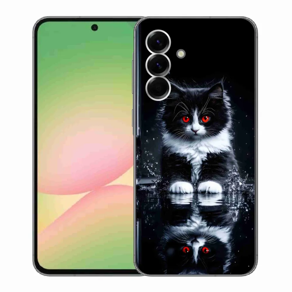 Rugalmas zselés tok mmCase a Samsung Galaxy A56 5G képével - fekete-fehér cica