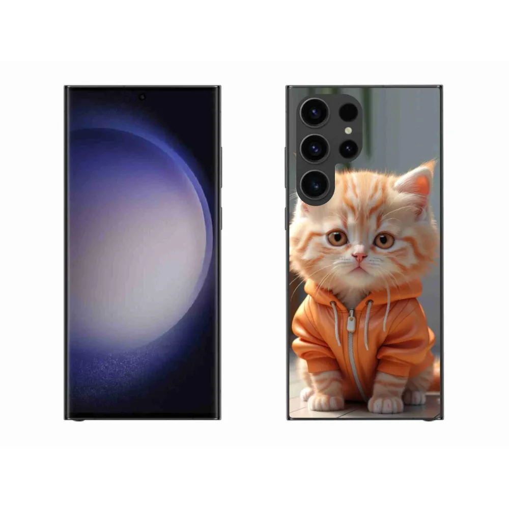 Rugalmas zselés tok mmCase a Samsung Galaxy S23 Ultra 5G képével - cica melegítőfelsőben