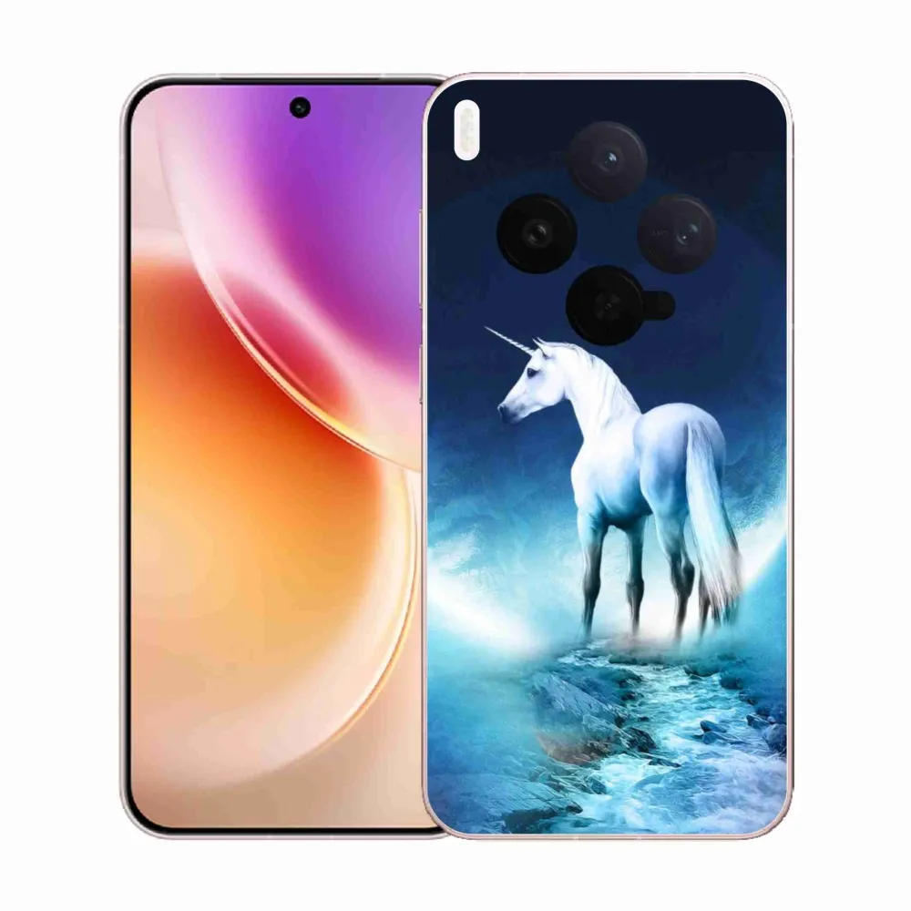Rugalmas zselés tok mmCase képpel a Vivo X300-hoz - fehér egyszarvú