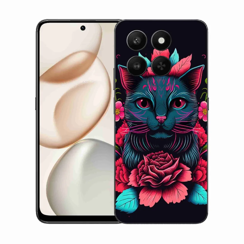 Zselés borító mmCase a Honor 400 Smart 5G/4G/Honor X7d számára - virágok és macska