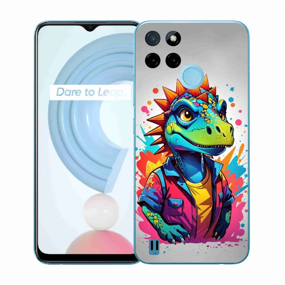 Rugalmas zselés tok mmCase képpel a Realme C21Y/C25Y készülékhez - színes dinoszauruszok