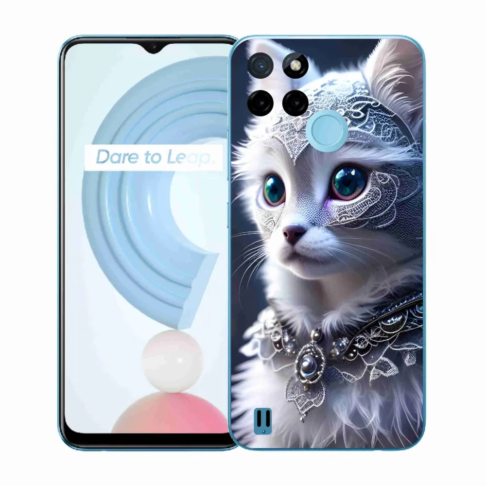 Rugalmas zselés tok mmCase képpel a Realme C21Y/C25Y készülékhez - fehér macska